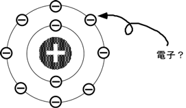 「電子」と言う言葉はみなさんご存じだと思います。中学校、もしくは、高校で下の図のような図を何回も見たことがあることでしょう。