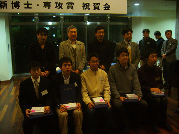物理学専攻賞受賞者と指導教官の集合写真
