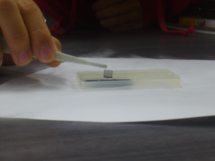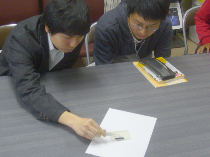 2008年度基礎ゼミ 高温超伝導体の浮遊実験のようす
