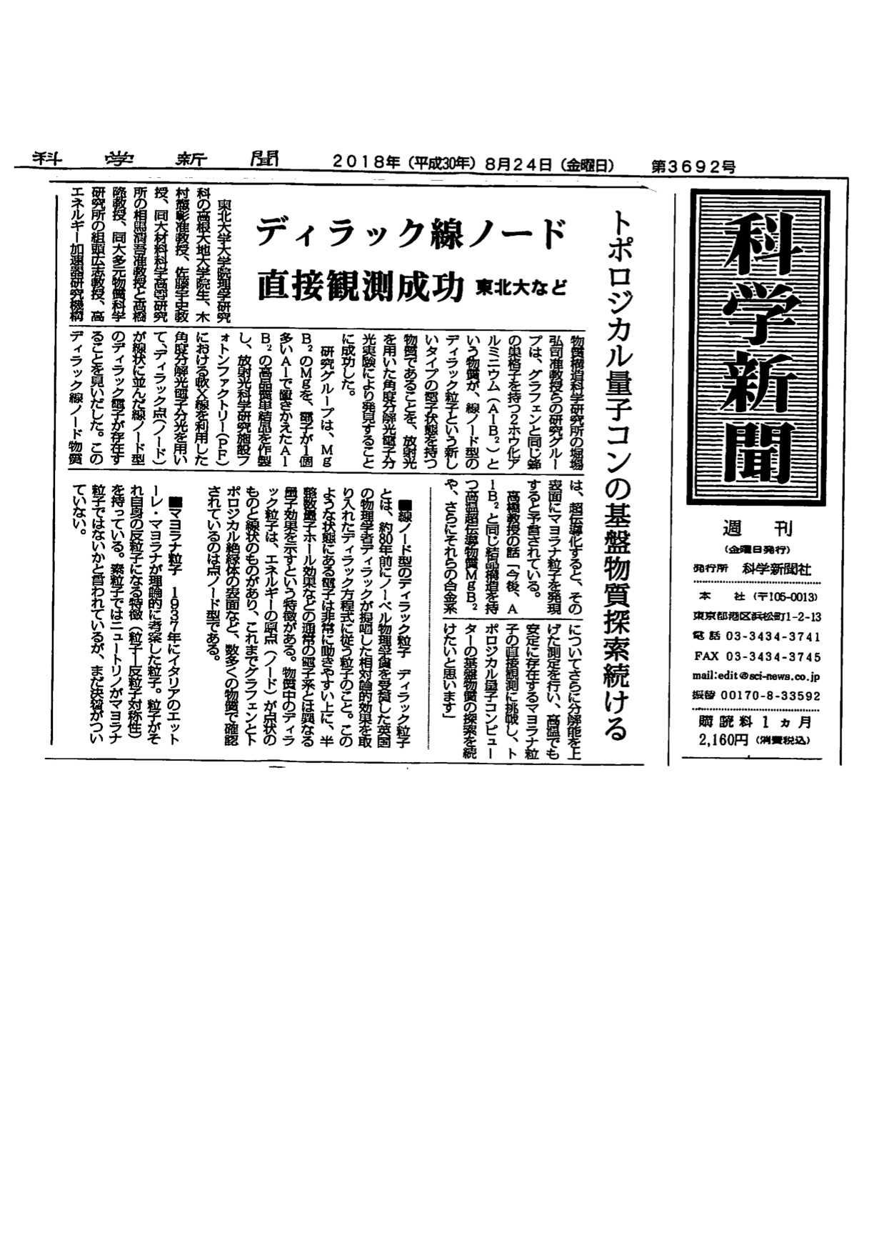 科学新聞 2018年8月24日