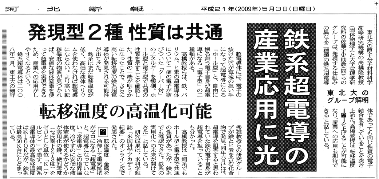 河北新報 2009年5月3日