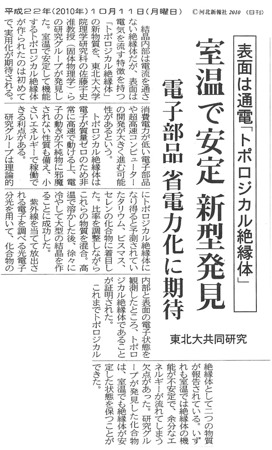 河北新報 2010年10月11日
