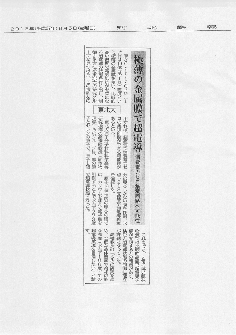 河北新報 2015年6月5日