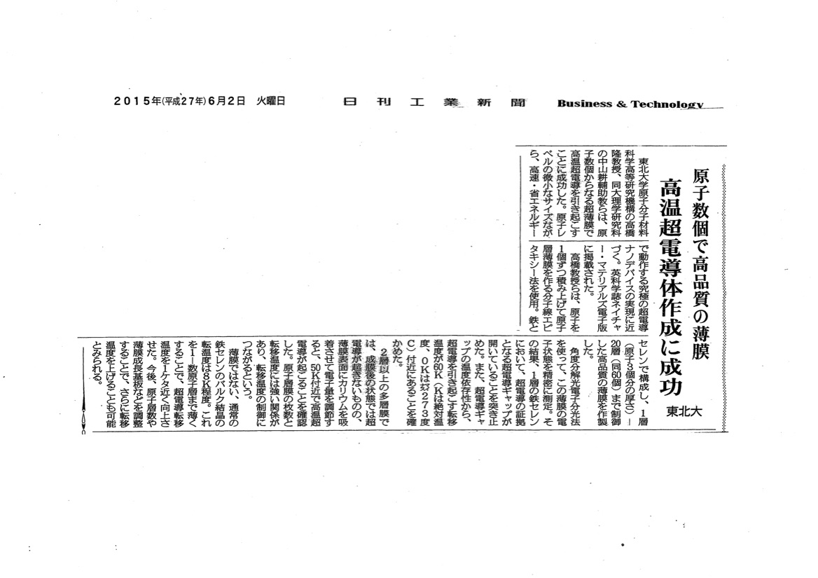 日刊工業新聞 2015年6月2日