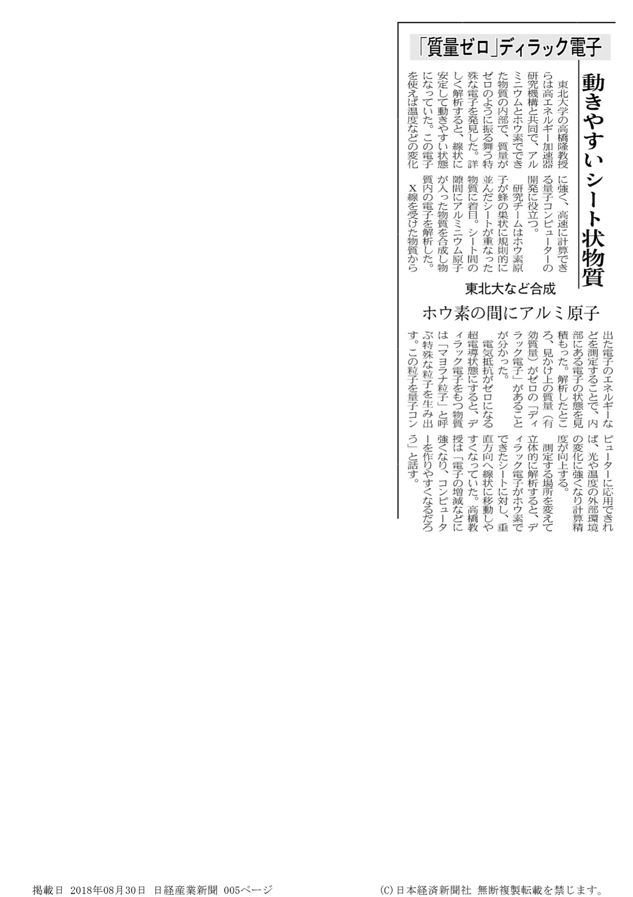 日経産業新聞 2018年8月30日